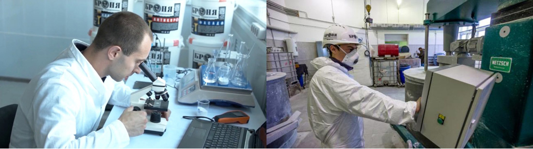 VIRC Bronya Company Group은 볼고그라드 국립기술대학교, 볼고그라드국립건축건설대학교의 연구원 및 전문가들과 공동으로 배합 공식 및 기술 개선, 신제품 개발, 재료 품질 정밀 분석 등과 관련된 연구 프로젝트를 추진 중에 있습니다. 더 효율적인 제품을 개발하고자 신규 재료와 시스템 개발에 주력하고 있으며, 특히 다양한 조건 하에 Bronya시리즈를 분석하여 제품의 작용 원리를 규명하고, 이를 바탕으로 현재의 구성 성분을 개선하고 있습니다.