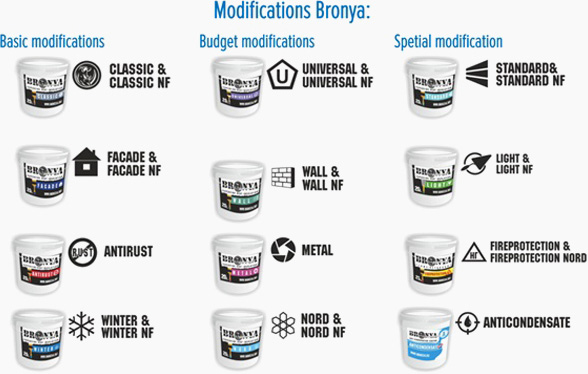 * 초미세 액상 세라믹 단열 도료 Bronya는 건물 내외벽, 지붕, 문설주, 콘크리트 바닥, 온냉수 파이프, 스팀 파이프, 에어컨 시스템의 에어덕트, 냉각 시스템, 각종 용기, 탱크, 트레일러, 냉장 설비 등에 사용할 때 더욱 뛰어난 성능을 발휘합니다. 또한 Bronya는 냉수 파이프 표면에 나타나는 결로 현상을 방지하고 SNiP 기술 규정에 따라 난방 시스템의 열 손실률을 감소시키는데 효과적입니다. Bronya의 적용 온도는 - 60 °С (영하 60 °С)에서 + 260 °С (영상 260 °С) 사이이며, 수명은 15년 입니다.