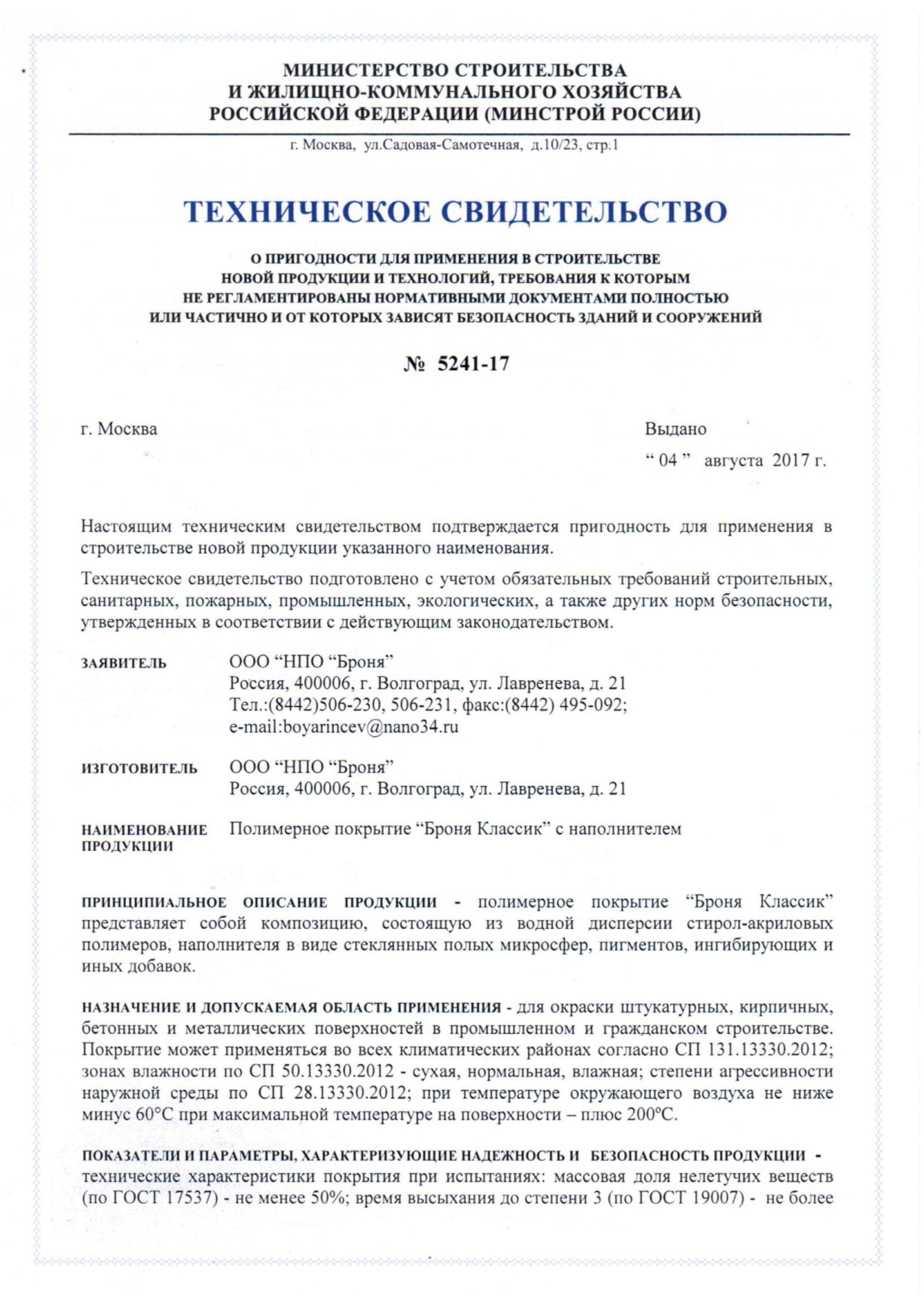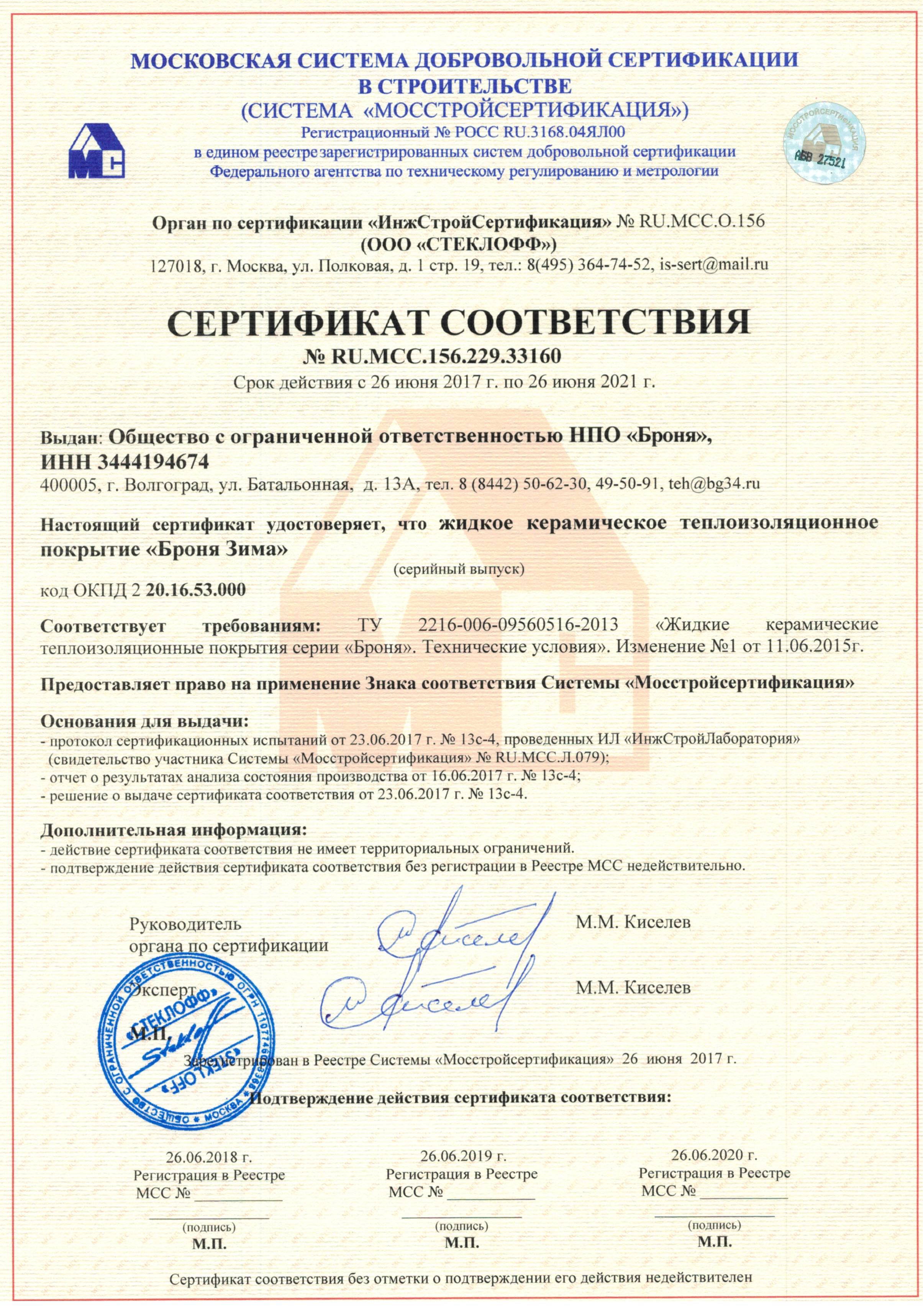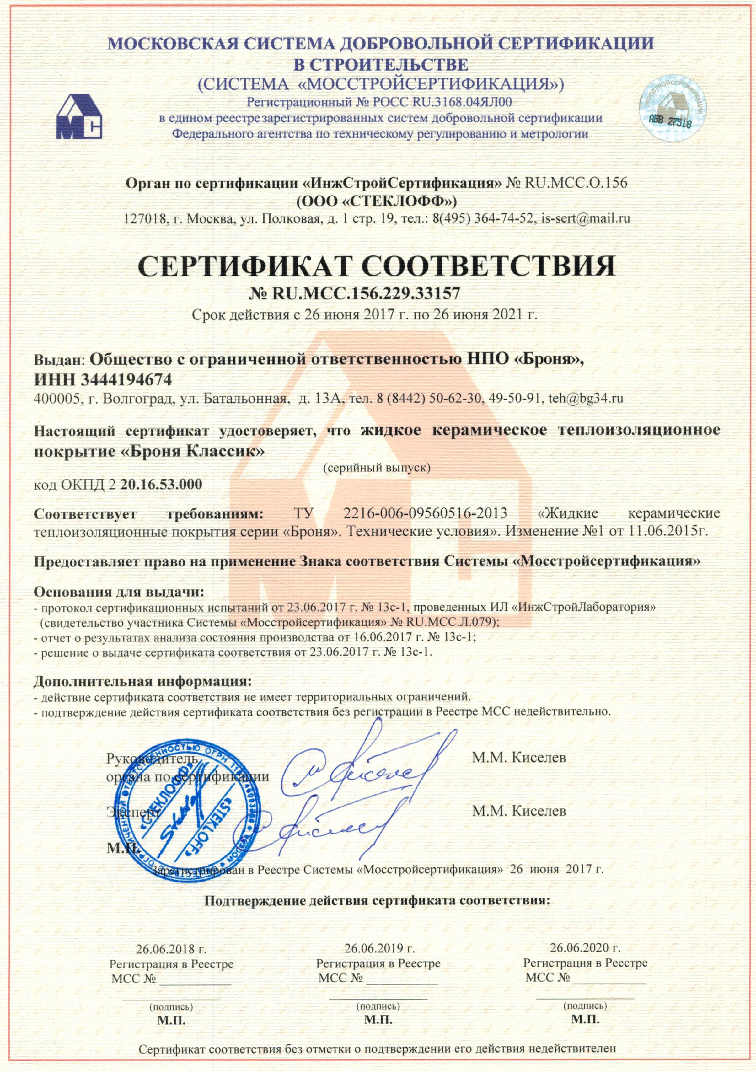 MOSSTROI 건축인증기관 발급 CLASSIC 품질인증