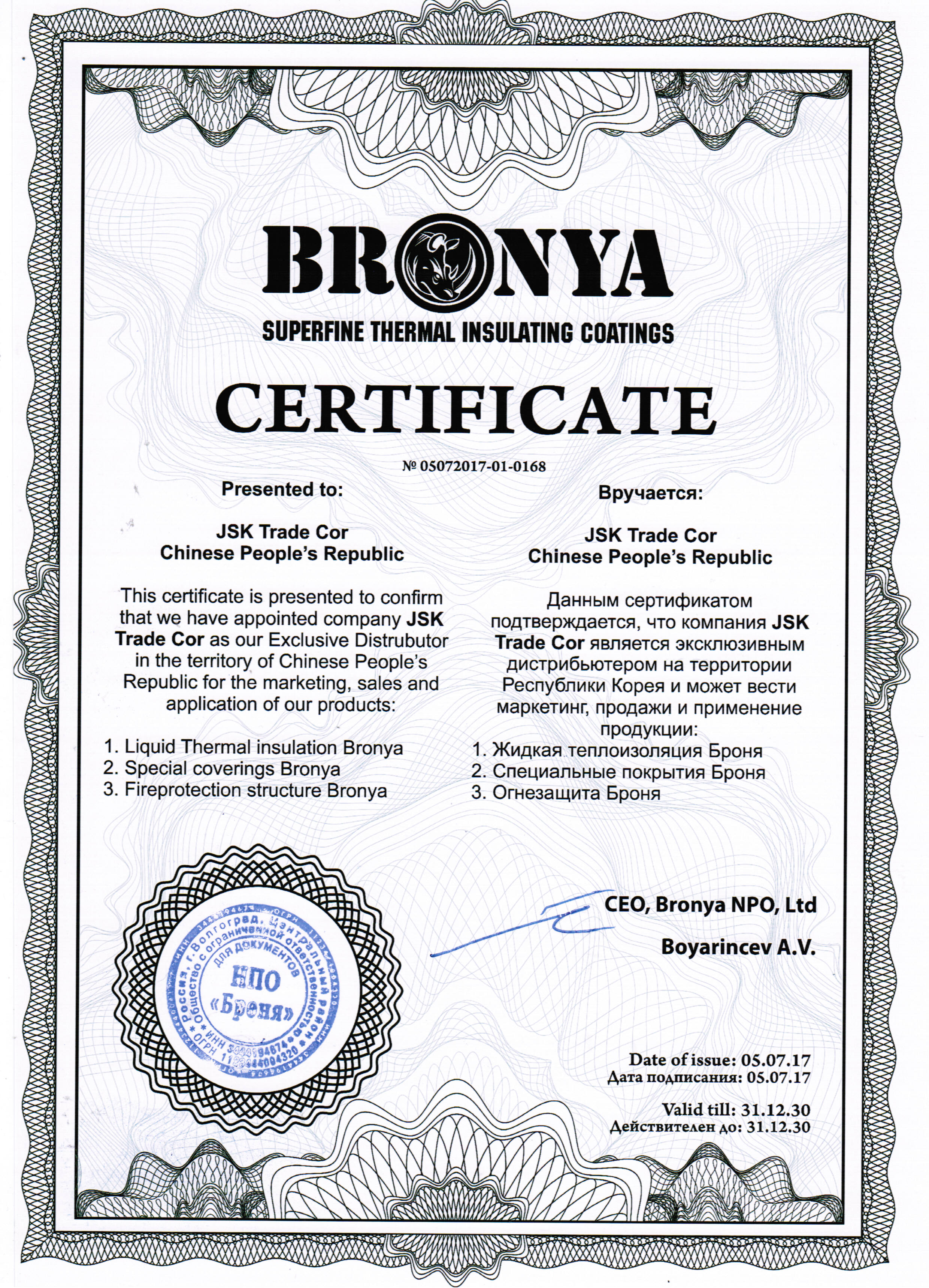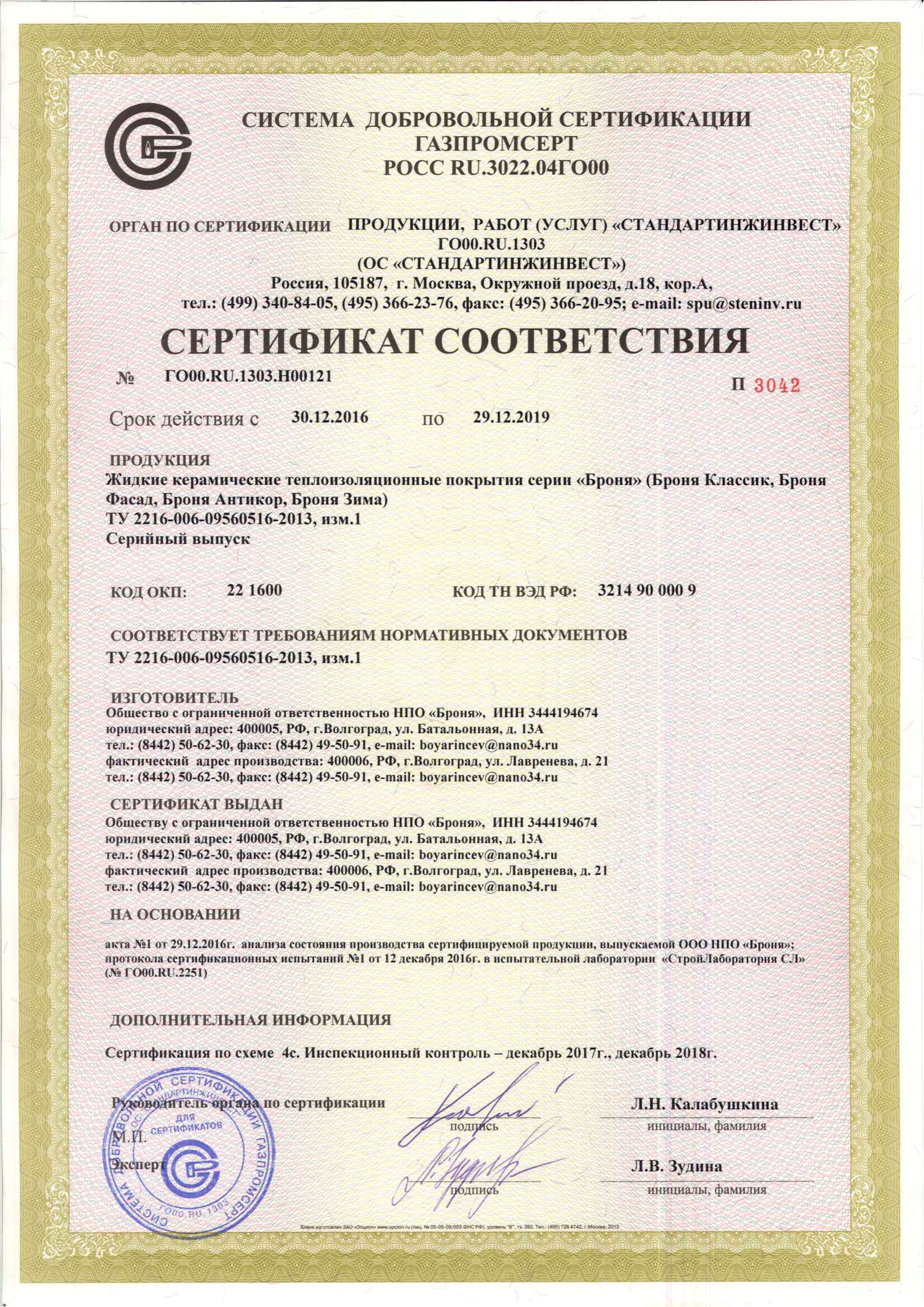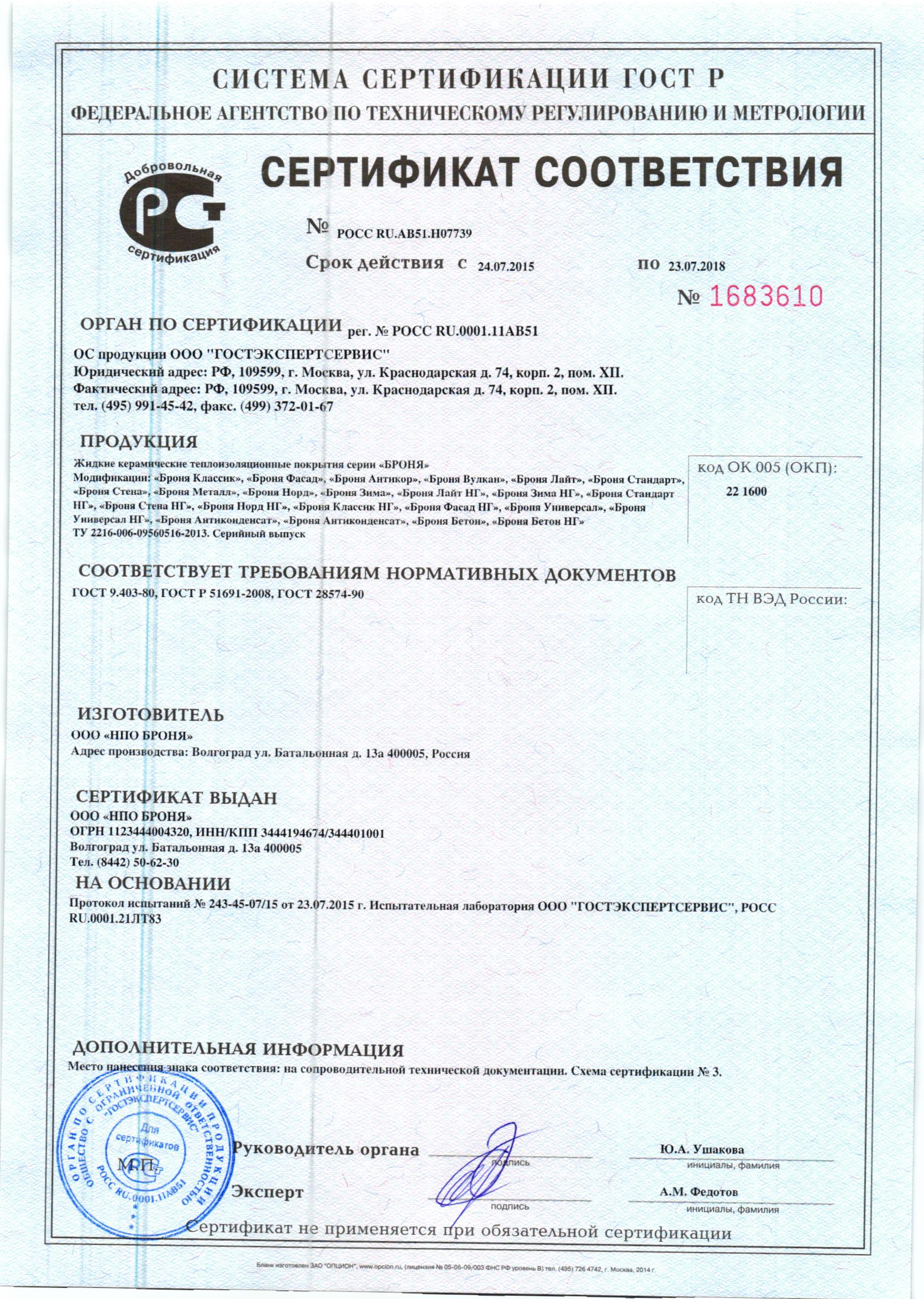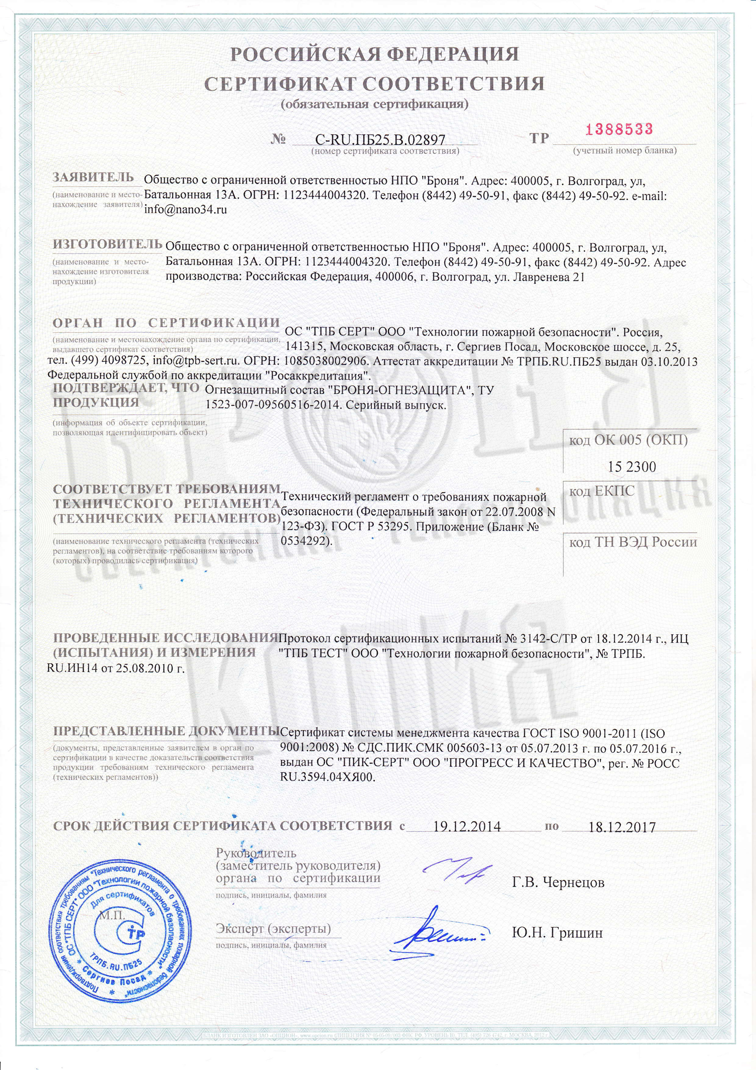 러시아 인증서발급기관 방염증서, NC-전제품