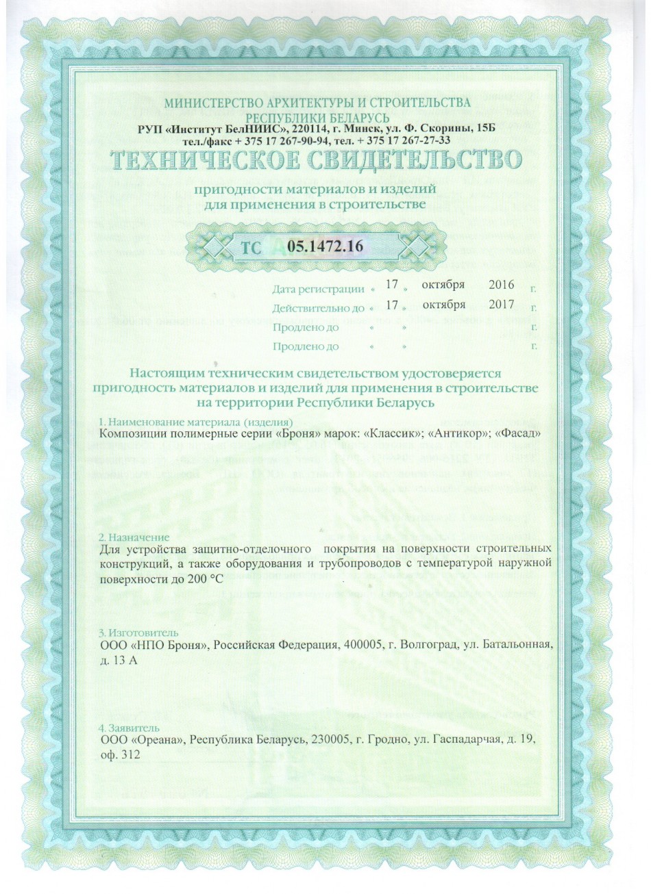 백러시아건설부 발급 단열재 인증서