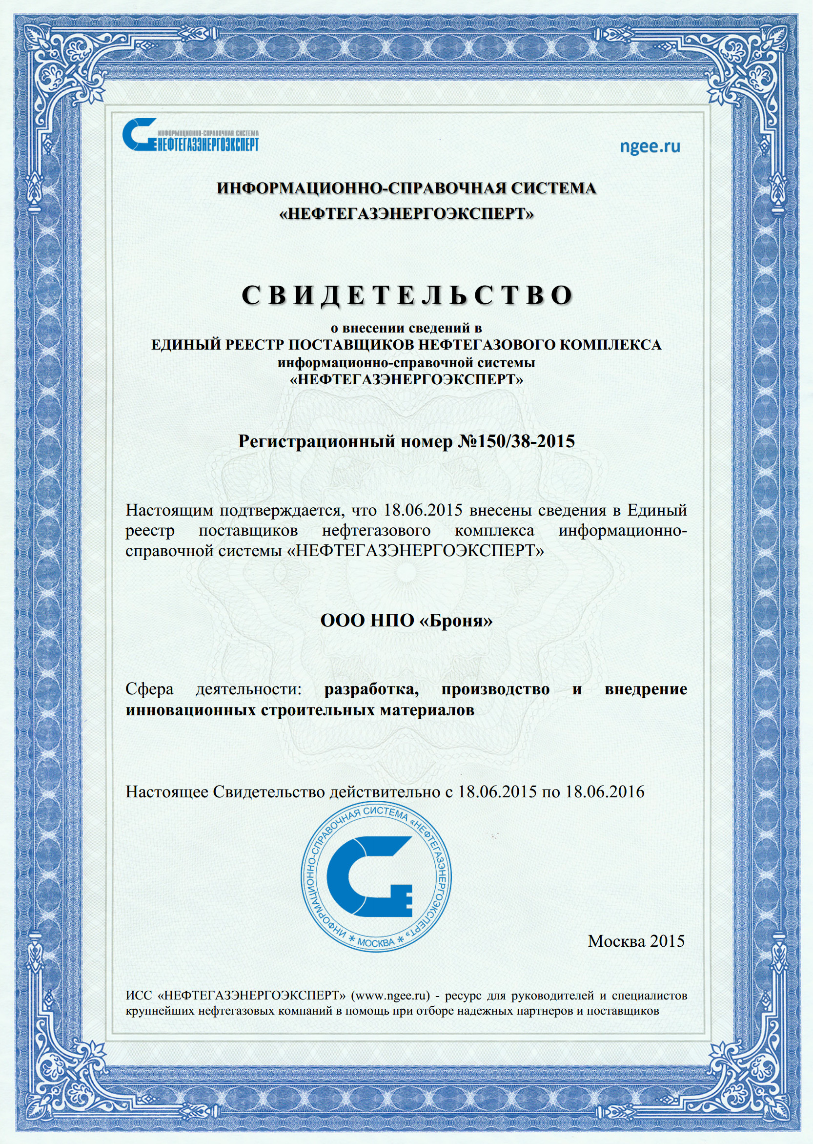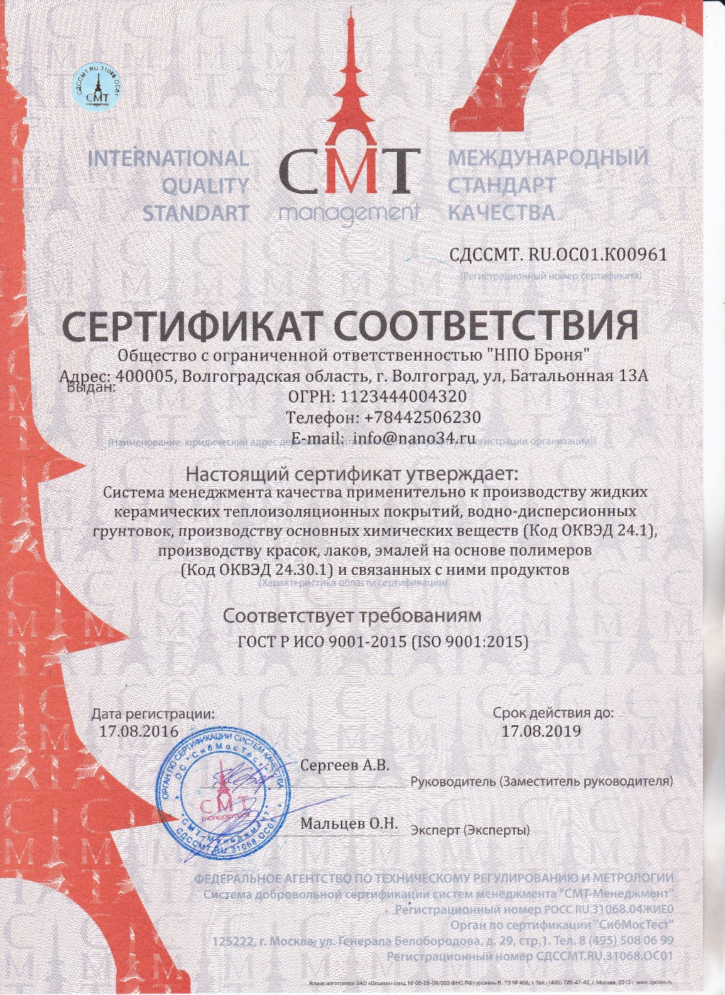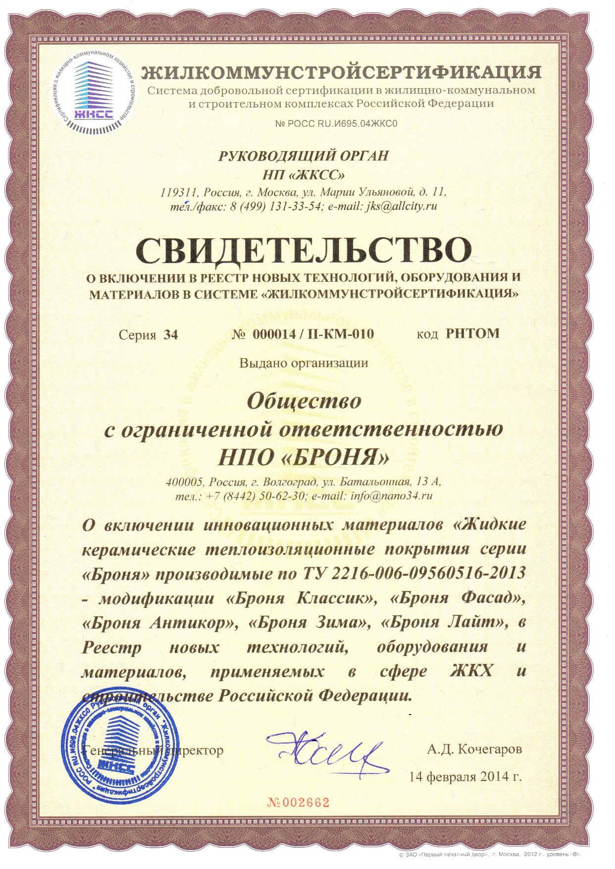 MOSSTROI 건축인증기관 발급 UNTIRUST 품질인증