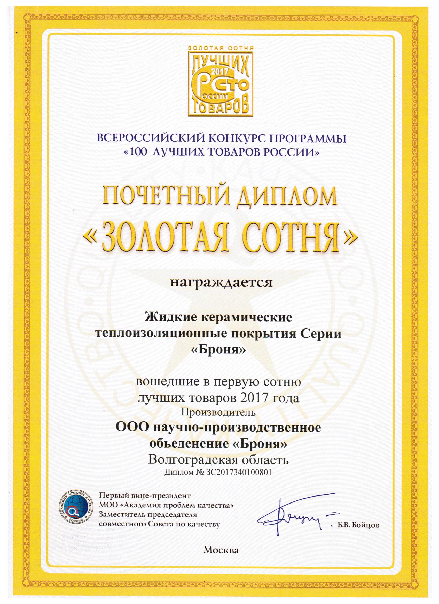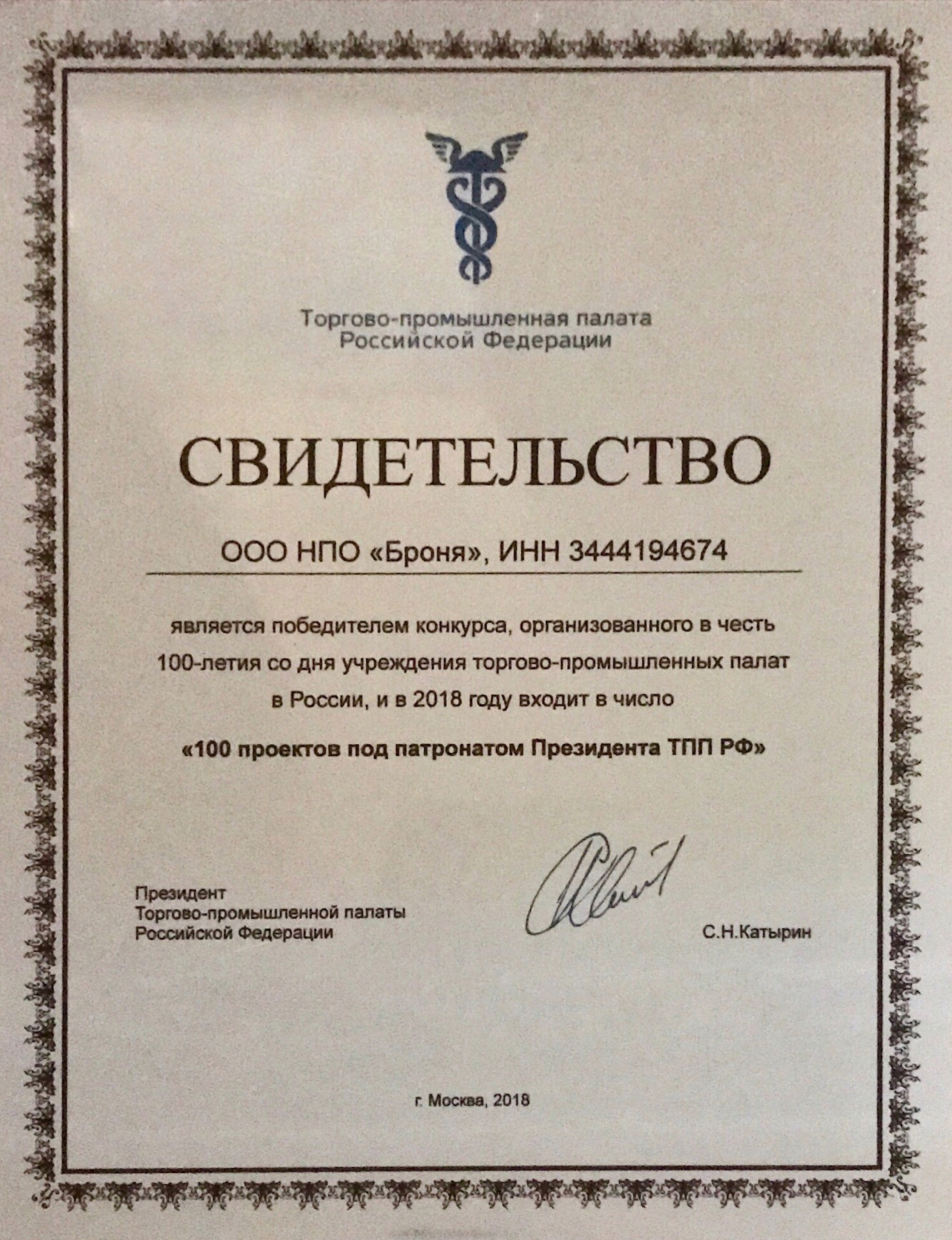 러시아대통령지원 100기업선발 증서