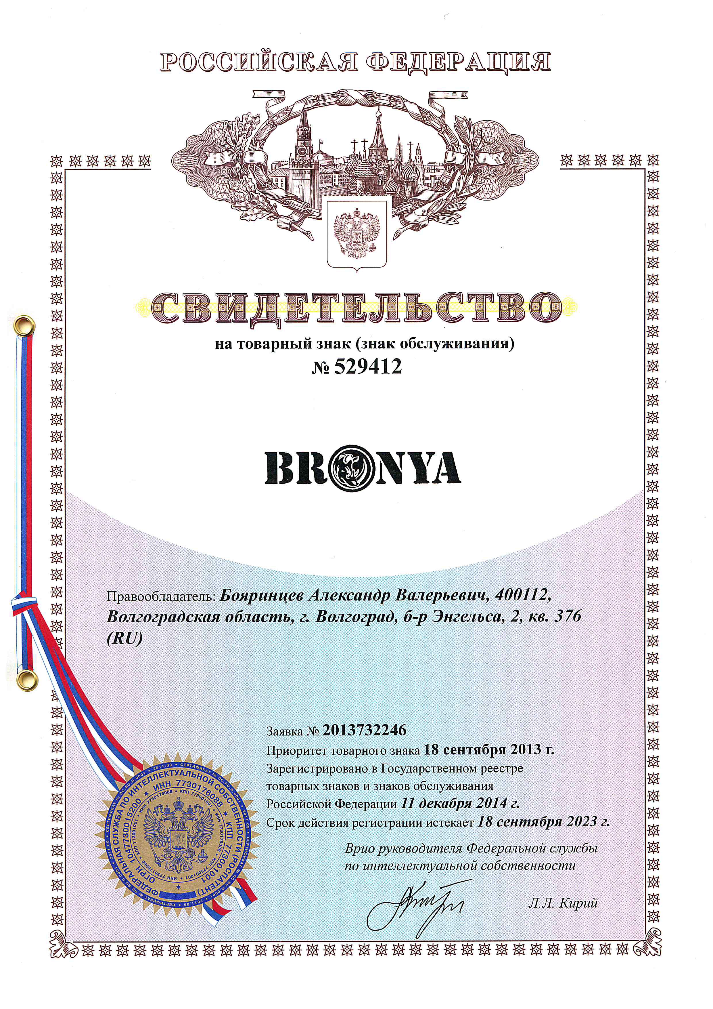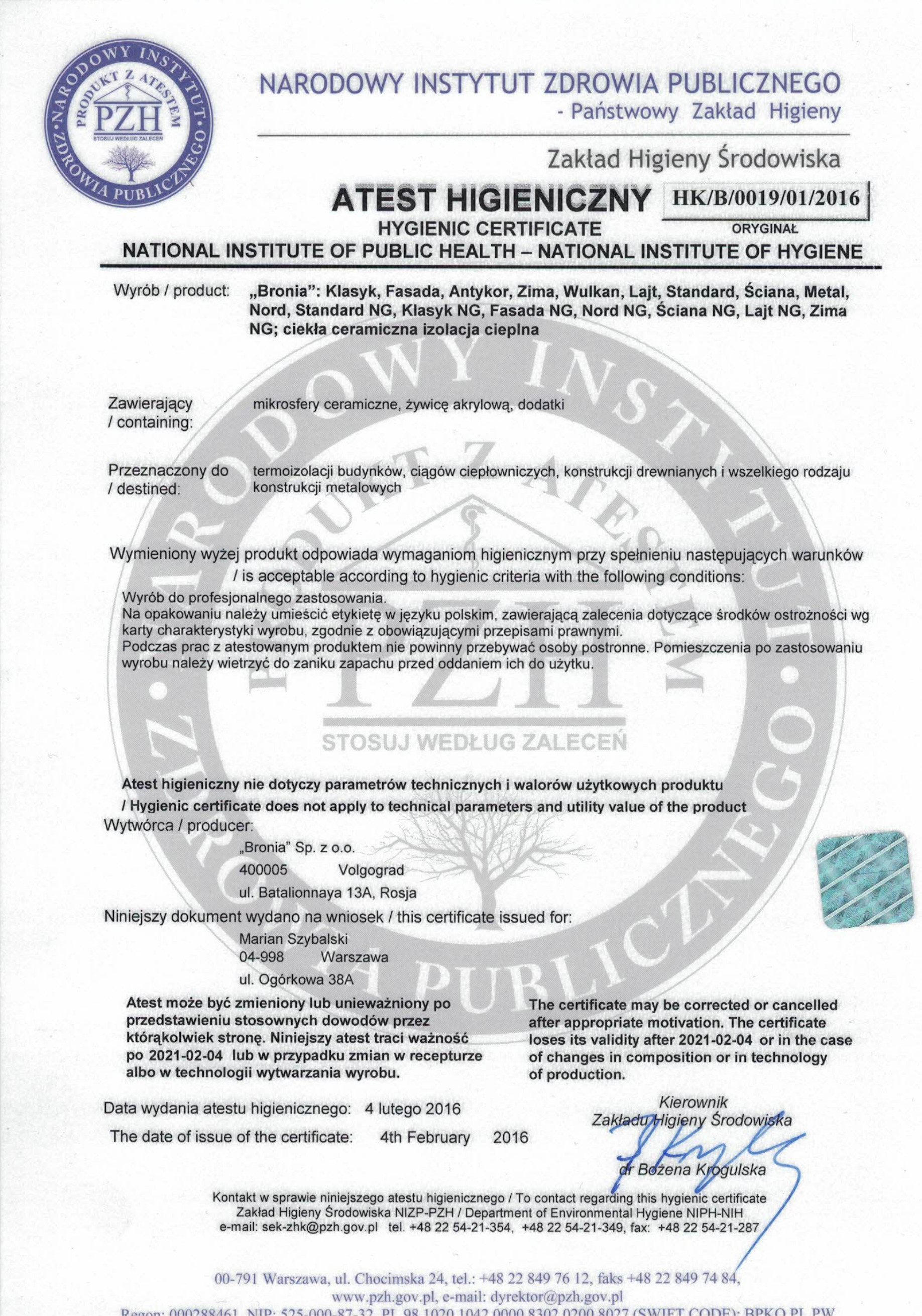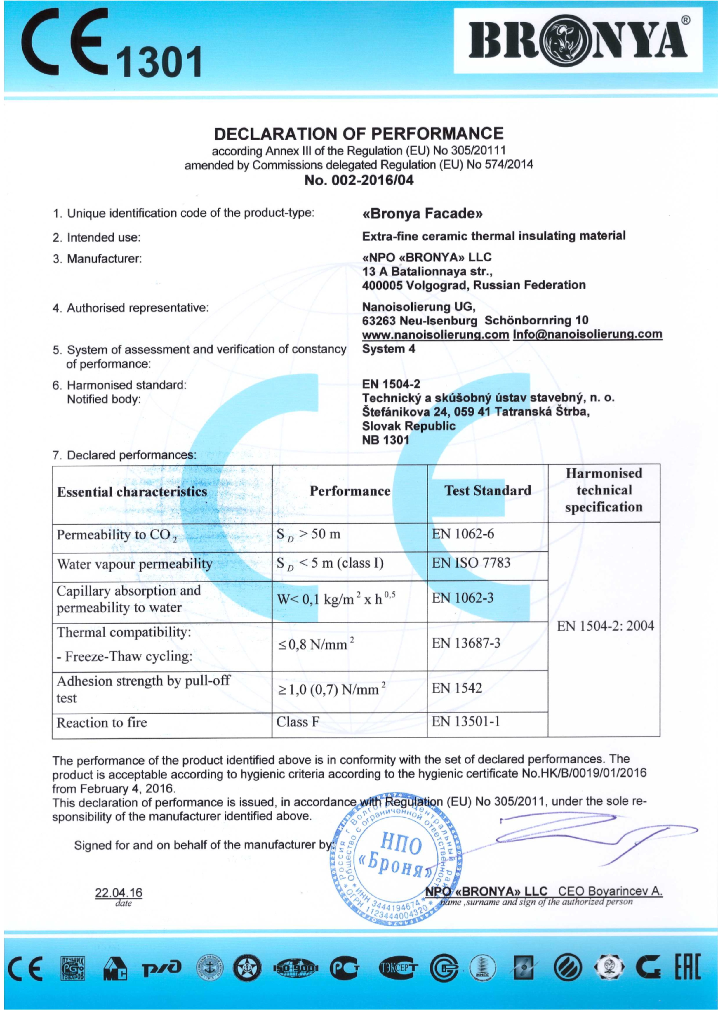 BRONYA NORD 인증서