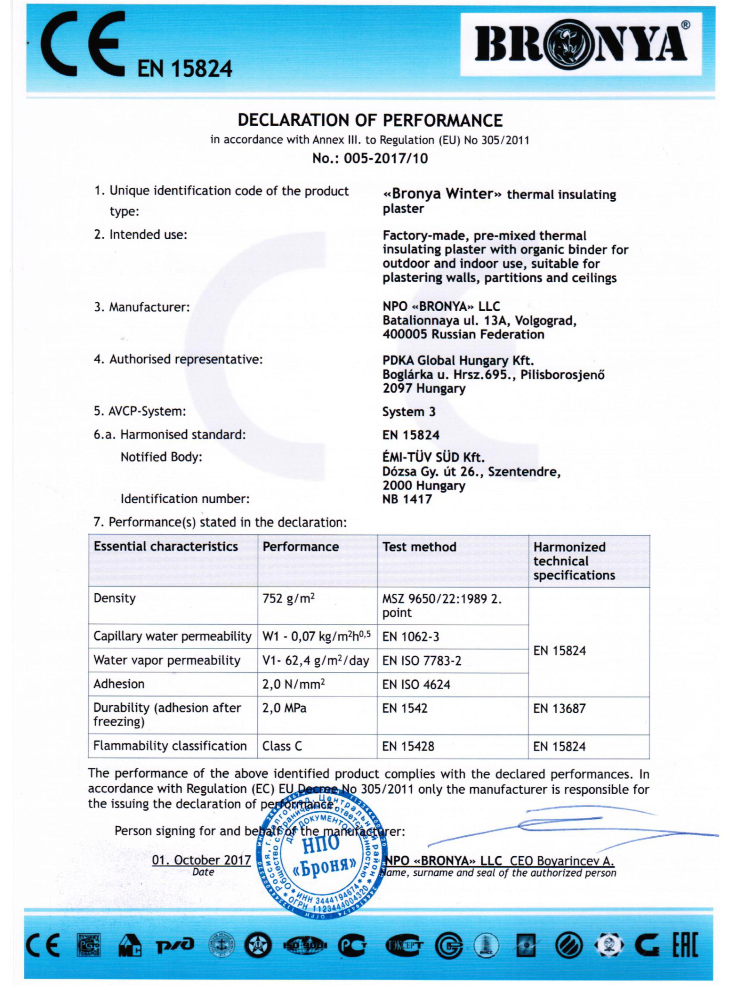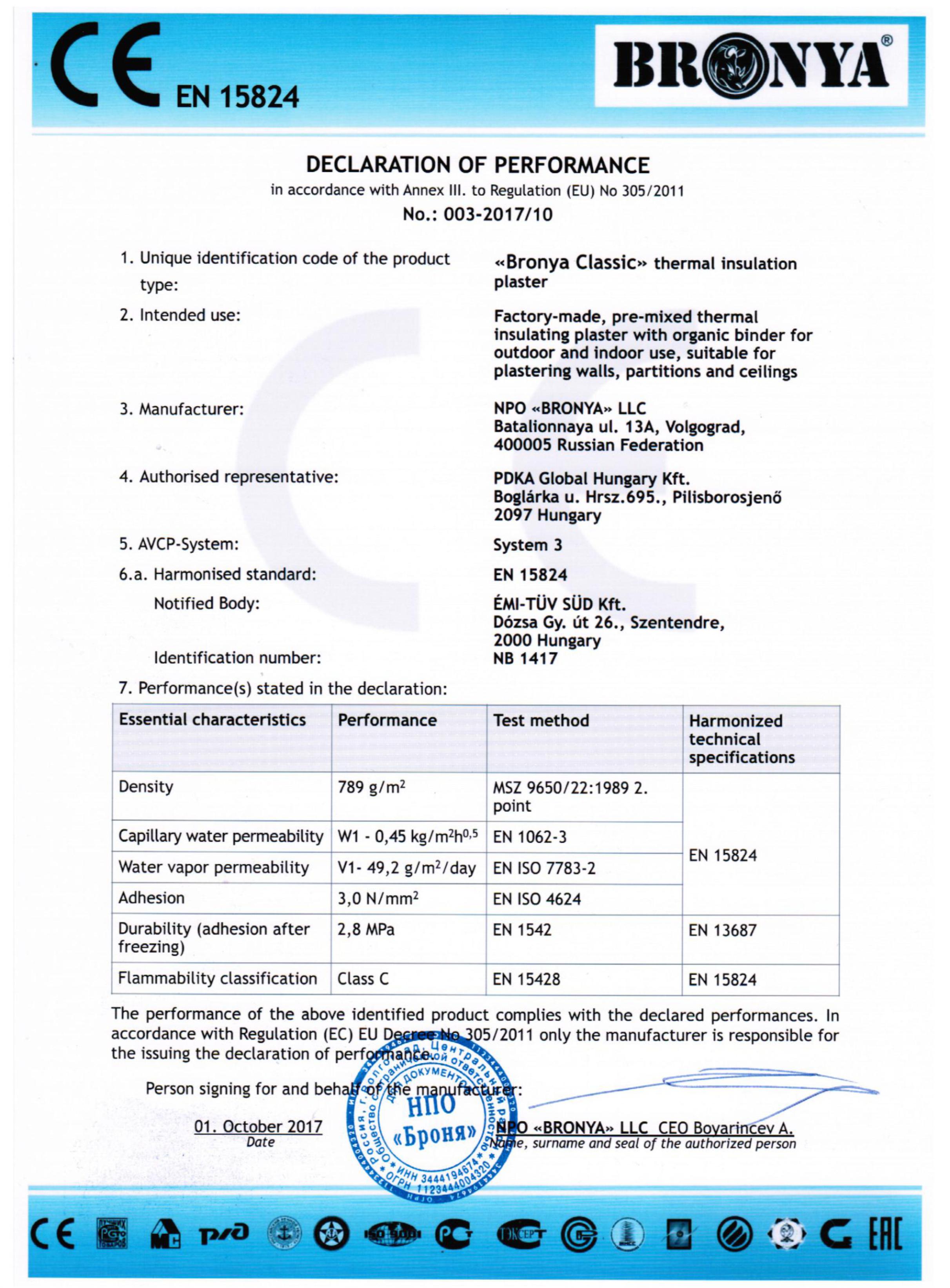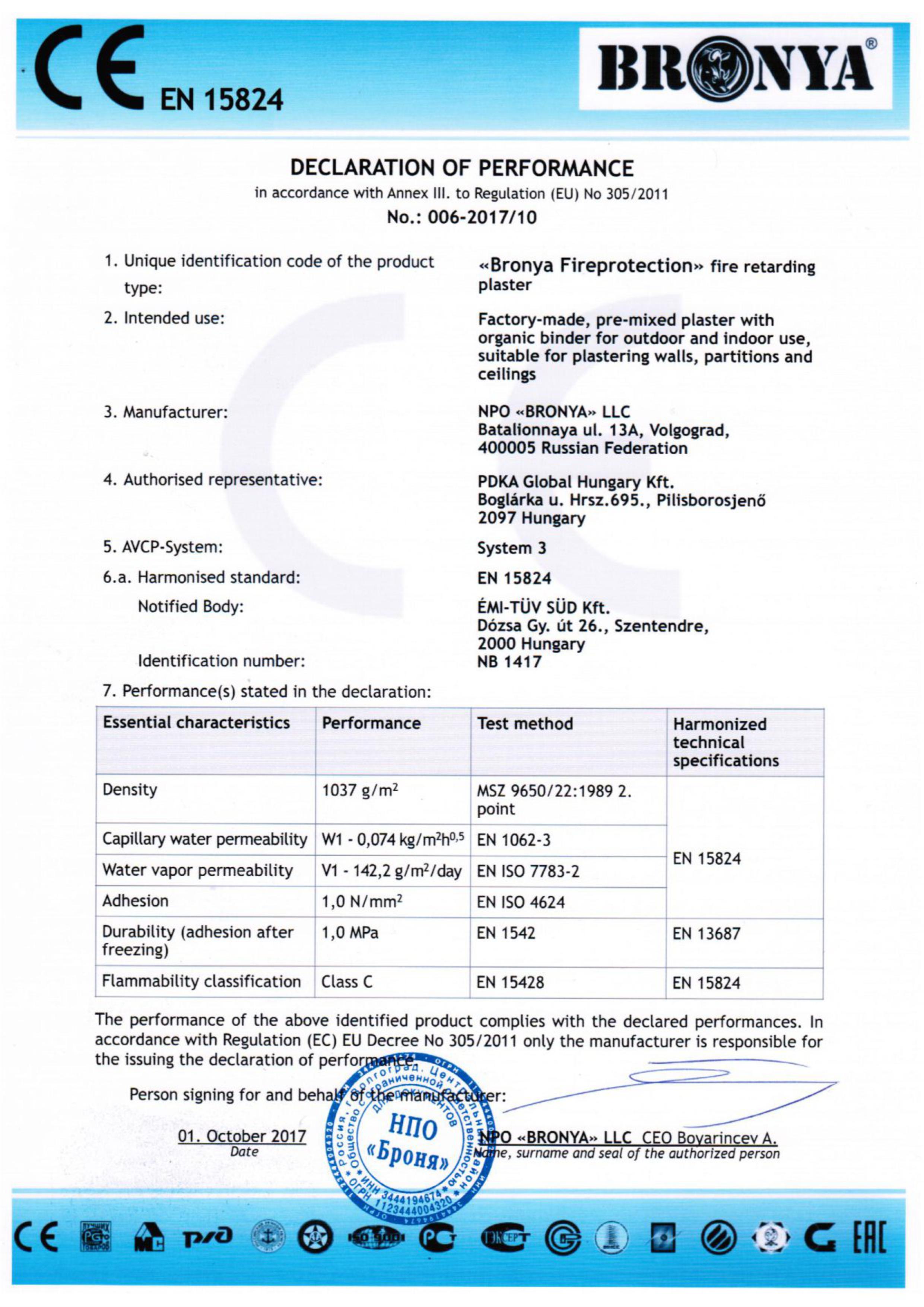 BRONYA FIREPROTECTION CE 보고서